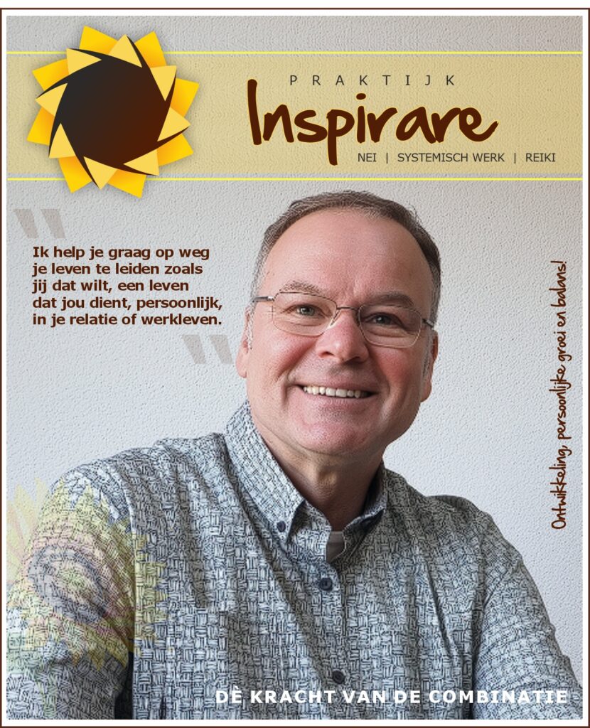 Daarom werk ik nu als zelfstandig therapeut en eigenaar van Praktijk Inspirare. Ik begeleid mensen met NEI, systemisch werk, Reiki en traumasensitief werk. Dat zijn geen losse methoden maar dat is een doordachte combinatie.
